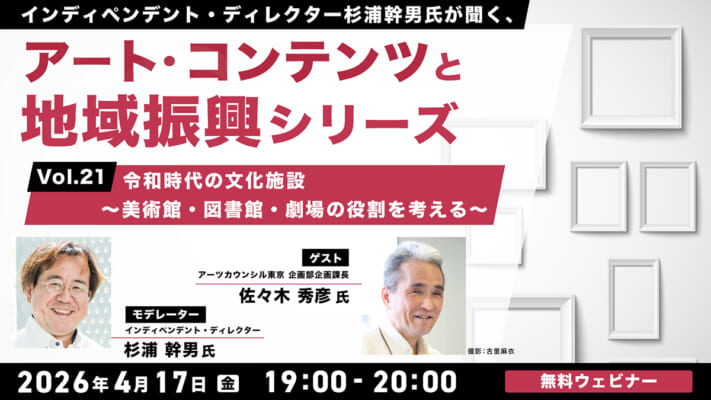 インディペンデント・ディレクター杉浦幹男氏が聞く、アート・コンテンツと地域振興シリーズvol.21 令和時代の文化施設~美術館・図書館・劇場の役割を考える~