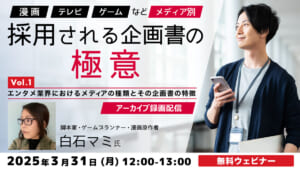 漫画、テレビ、ゲームといったエンタメ業界でジャンルを超えて仕事をするには、採用される企画書の制作が不可欠です。このウェビナーでは、テレビシナリオ・漫画原作・ゲームシナリオと、多岐にわたり活躍してきたクリエイターが、それぞれのメディアで必要とされるスキルと、採用される企画書の作り方について解説します。