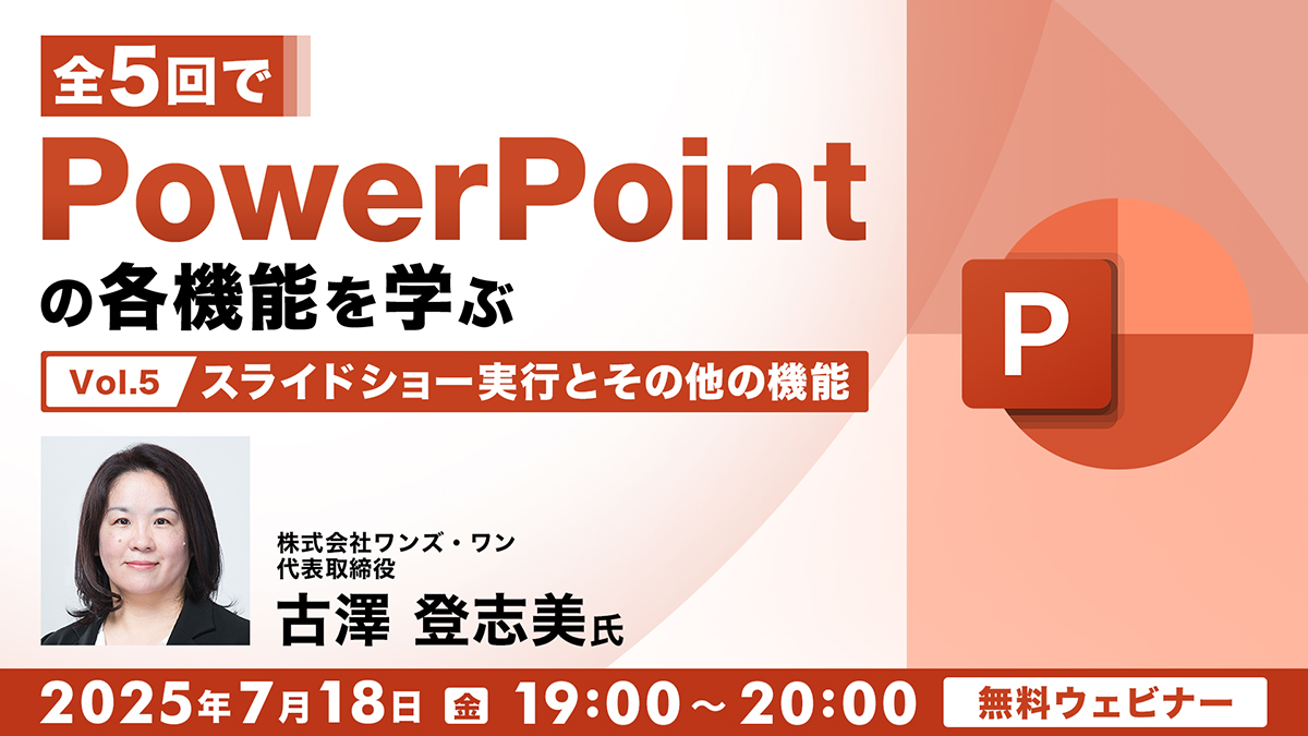 クリーク・アンド・リバー社(C&R社)は、2025年7月18日(金)に「全5回でPowerPointの各機能を学ぶ(5)スライドショー実行とその他の機能 」を実施します。