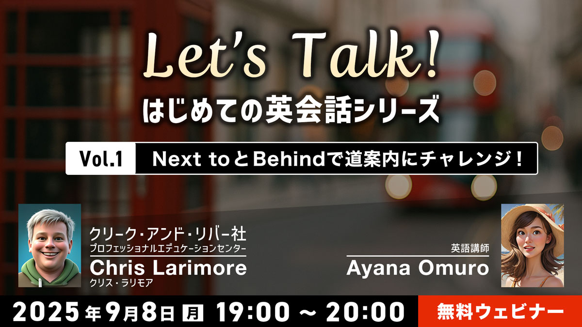 「Let’s Talk! はじめての英会話シリーズ」は、ランチタイム英会話でおなじみのChris先生と、ナビゲーターにOmuro先生をお迎えし、ネイティブ講師との練習+日本語解説で進めていきますので、初心者の方でも安心してご受講いただける内容となっています。