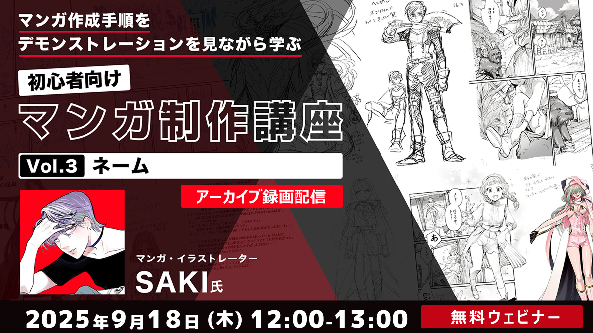 クリーク・アンド・リバー社(C&R社)は2025年9月18日(木)12時から、2025年8月18日(月)に実施した【マンガ作成手順をデモンストレーションを見ながら学ぶ 初心者向けマンガ制作講座 Vol.3ネーム】のアーカイブ録画配信を実施します。