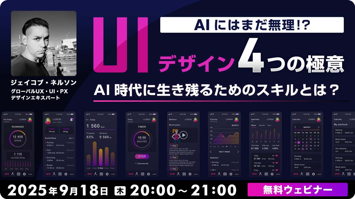 本ウェビナーでは、ジェイコブ・ネルソン氏が「AIがまだ習得できない4つのUIスキル」に焦点を当て、これからのUIデザイナーに求められる力を解説します。