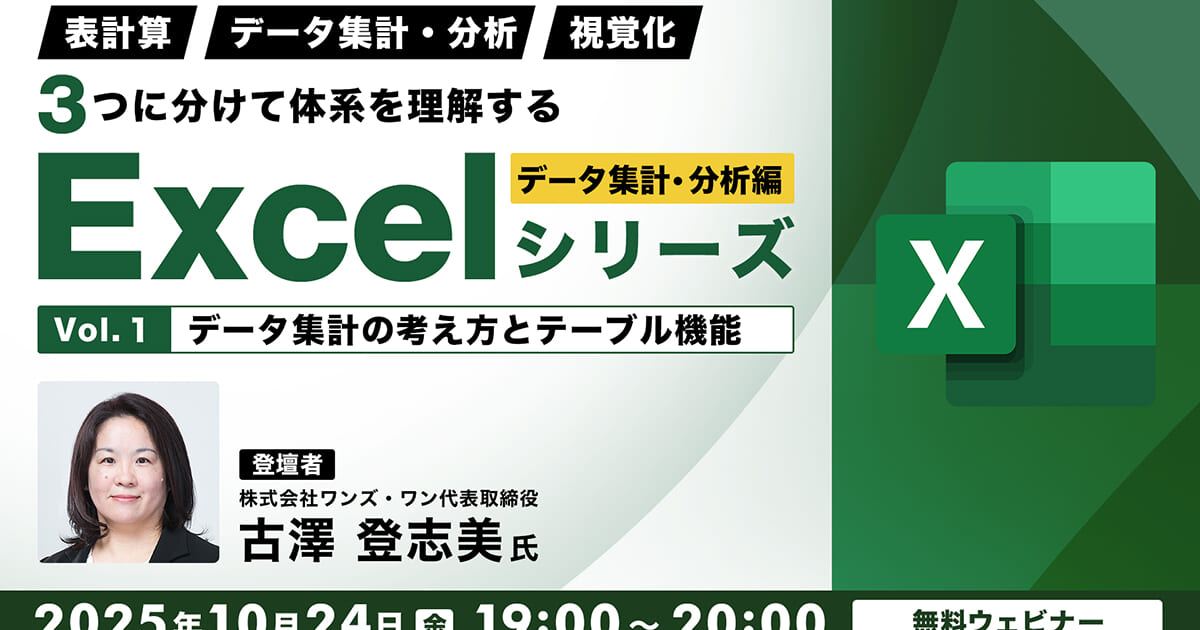 「表計算」「データ集計・分析」「視覚化」 3つに分けて体系を理解するExcelシリーズ データ集計・分析編 Vol.1【データ集計の考え方とテーブル機能】