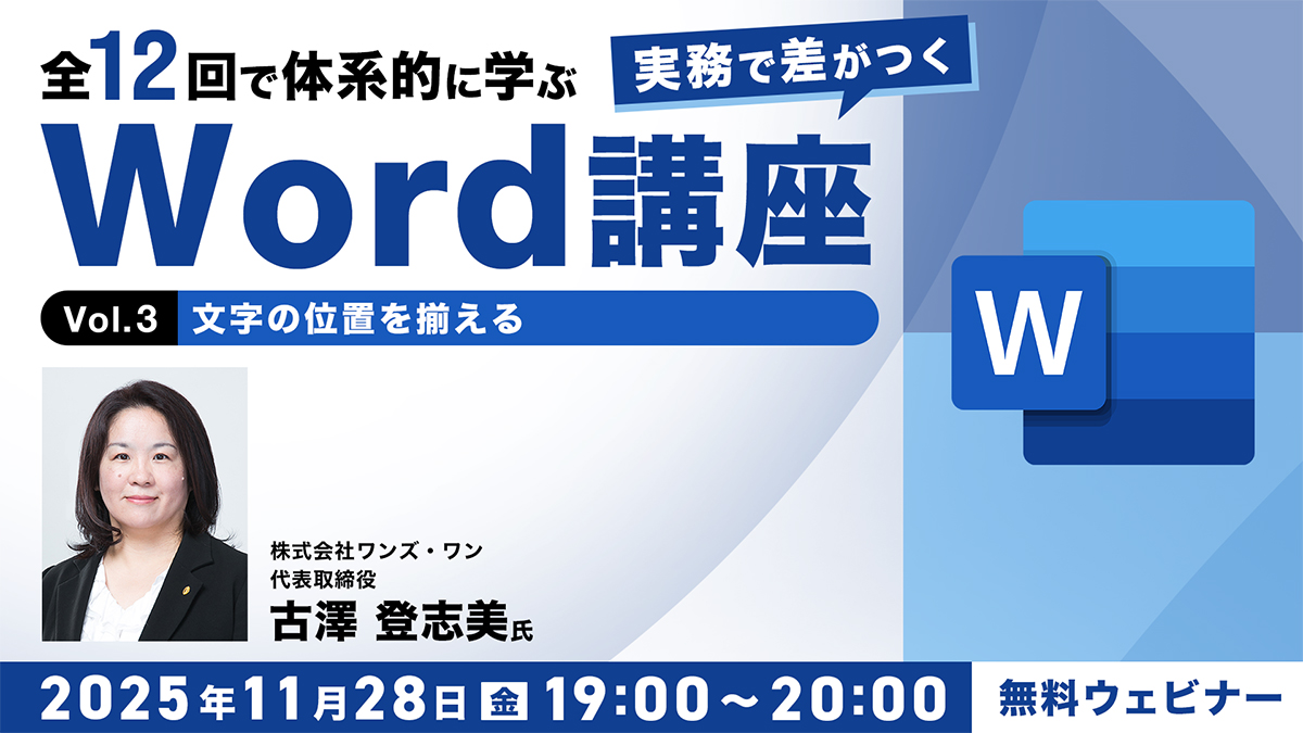 クリーク・アンド・リバー社(C&R社)は、2025年11月28日(金)に、全12回で体系的に学ぶ 実務で差がつくWord講座 Vol.3「文字の位置を揃える」を実施します。