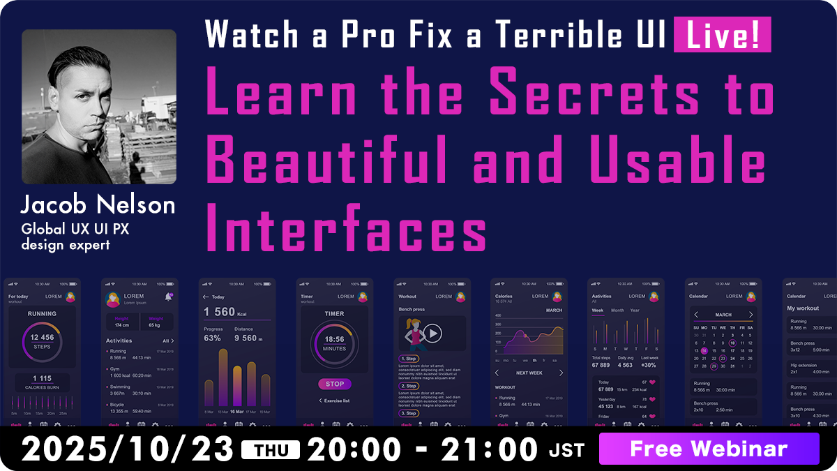 In this live webinar, UI design expert Jacob Nelson will take a poorly designed UI and transform it in real time—revealing the principles, techniques, and secrets behind beautiful and usable interfaces.
