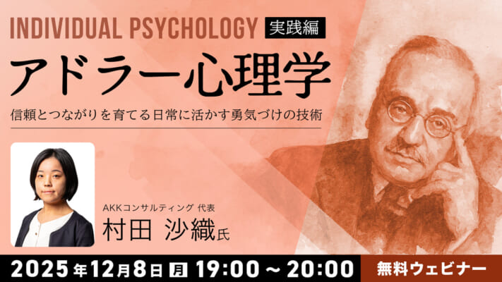 クリーク・アンド・リバー社(C&R社)は、2025年11月17日(月)に、アドラー心理学の基本理論を通じて、自分らしく生きるための考え方を学ぶウェビナーを開催します。