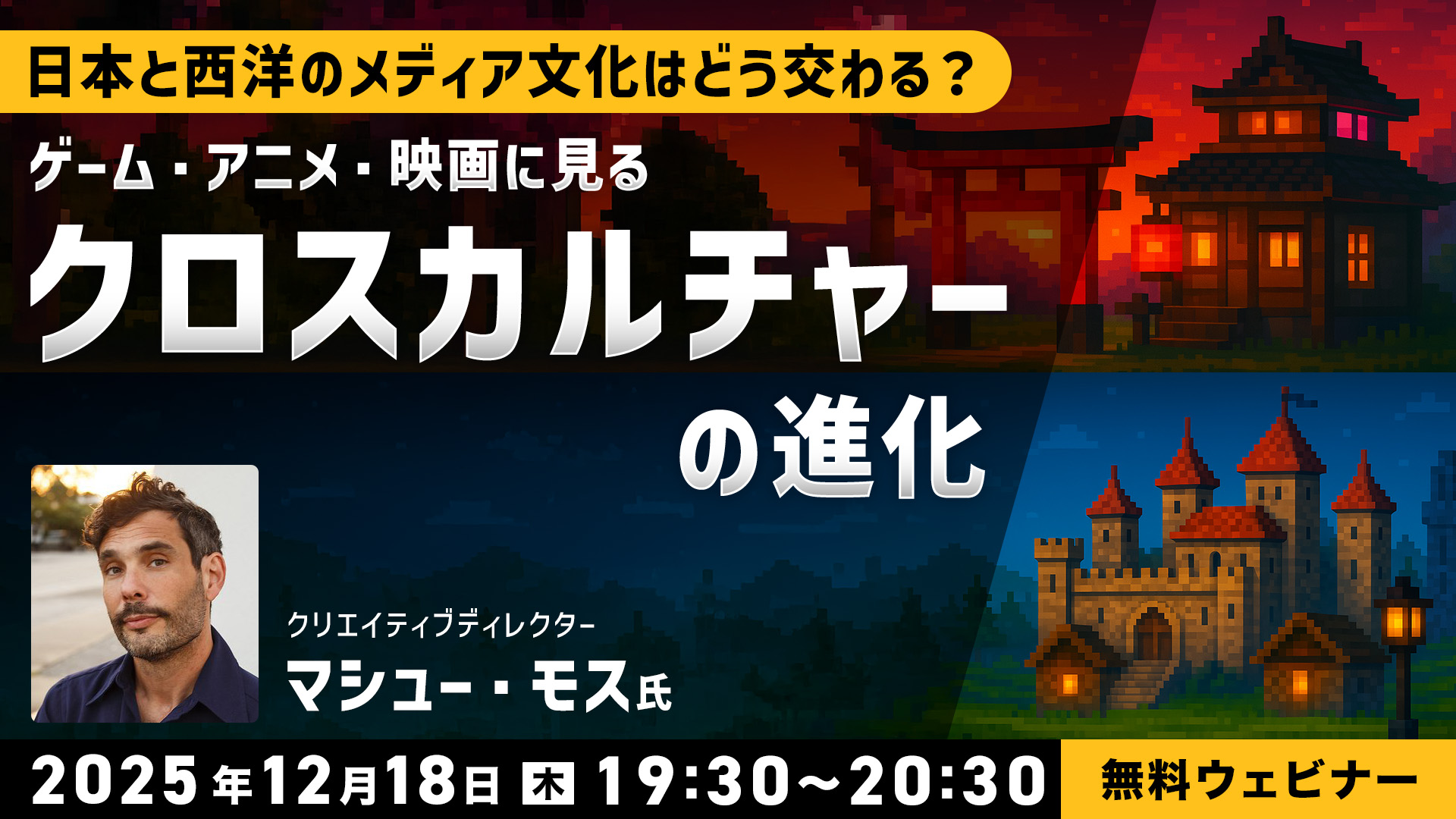 このウェビナーでは、日本のゲームやアニメが西洋の美学に与えた影響、そして西洋の映画やジャンルが日本のゲームデザインに与えた影響を深掘りします。