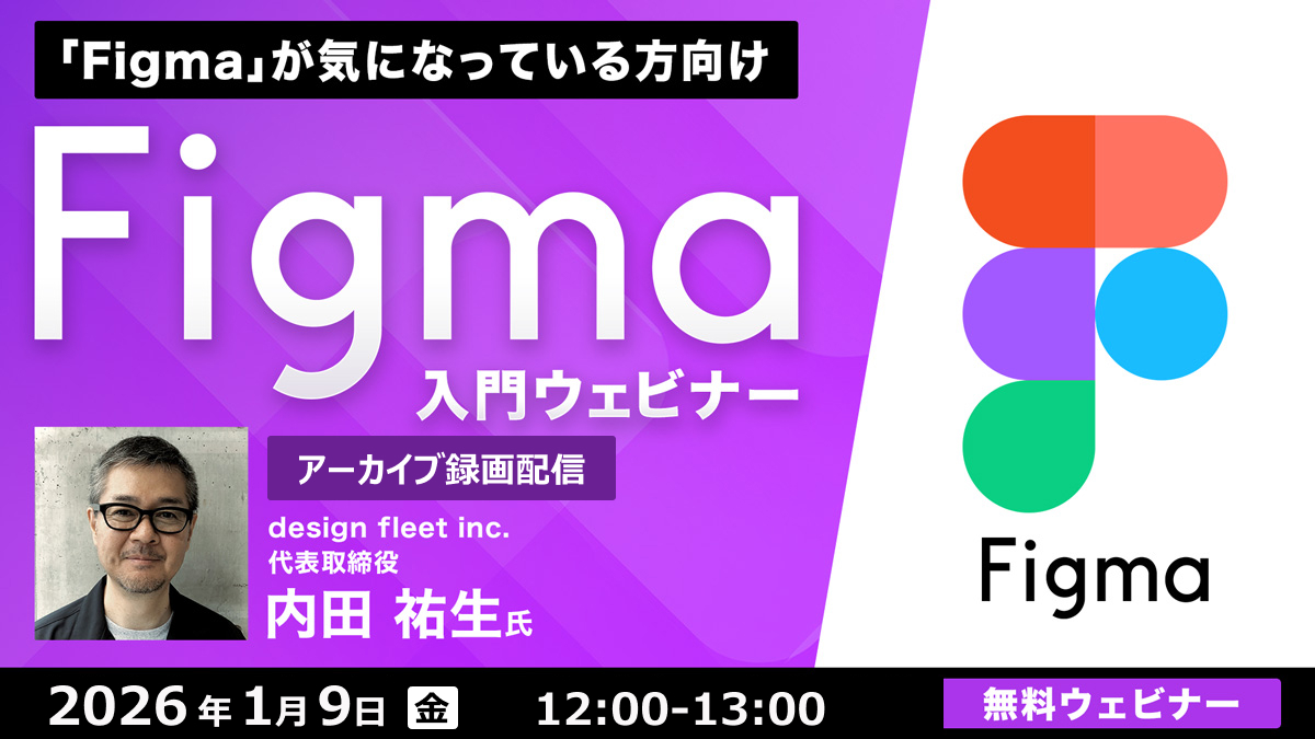 クリーク・アンド・リバー社(C&R社)は2026年1月9日(金)12時から、2025年5月29日(木)に実施した【【Figmaが気になっている方向け】Figma入門~Web、アプリ、UI、UXデザインの第一歩~】のアーカイブ録画配信を実施します。