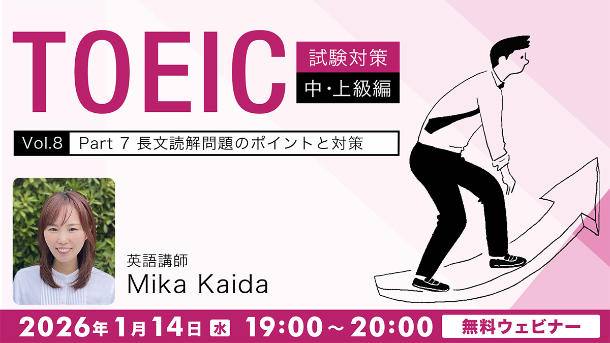 クリーク・アンド・リバー社(C&R社)は 2026年1月14日(水)に、TOEIC L&Rテストで700点以上のスコアを目指す、中上級者向けの方を対象としたTOEICの無料ウェビナーを実施します。