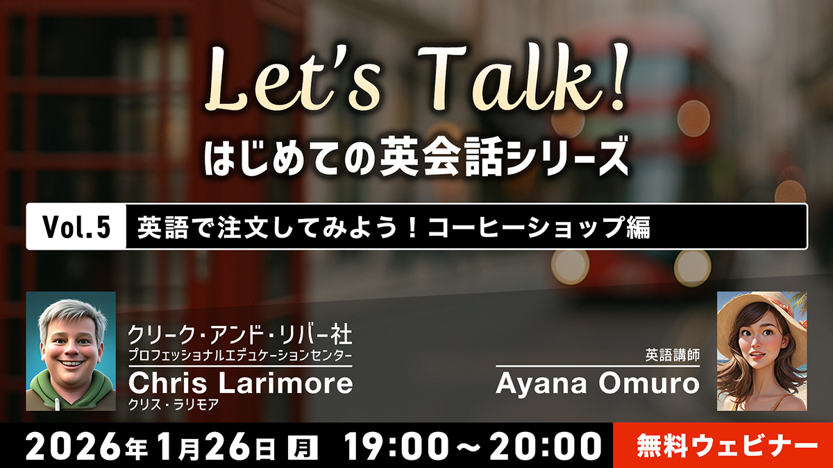 「Let’s Talk! はじめての英会話シリーズ」は、ランチタイム英会話でおなじみのChris先生と、ナビゲーターにOmuro先生をお迎えし、ネイティブ講師との練習+日本語解説で進めていきますので、初心者の方でも安心してご受講いただける内容となっています。