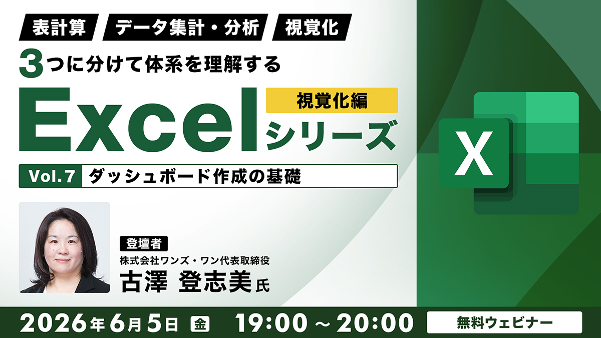 クリーク・アンド・リバー社(C&R社)は、2026年6月5日(金)に、Excelの機能を「表計算ソフト」から「データ集計ツール」として再認識し、より効果的に活用するための知識を身に着けていただける「3つに分けて体系を理解するExcelシリーズ」の視覚化編 Vol.6を開催します。