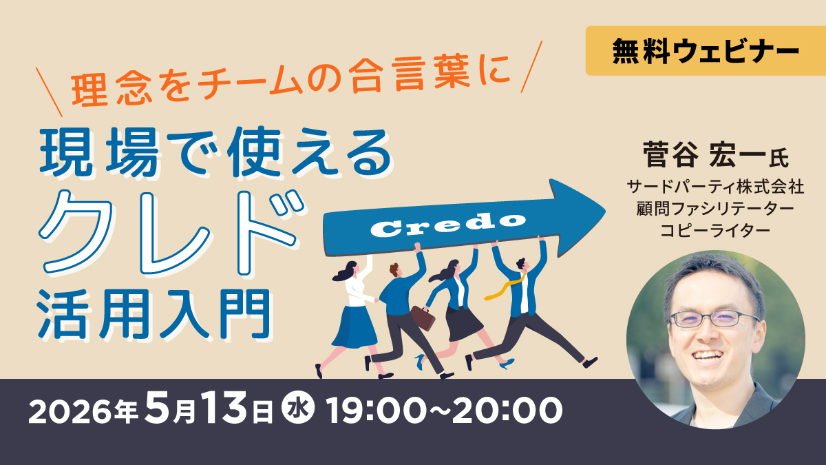 クリーク・アンド・リバー社(C&R社)は、2026年5月13日(水)にチームで働く方に向けて、理念やクレドを現場の判断に活かすための考え方を学ぶウェビナーを開催します。