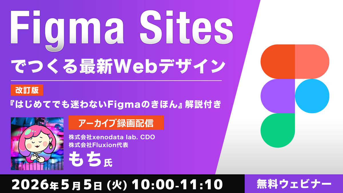本ウェビナーでは、Figmaの基本操作からサイト構築まで体系的に学べる『はじめてでも迷わないFigmaのきほん やさしく学べるWebサイト・バナーデザイン入門』(インプレス)の著者であるもちさんが、リニューアル版の内容を踏まえながらFigma Sitesの活用ポイントを実演解説します。