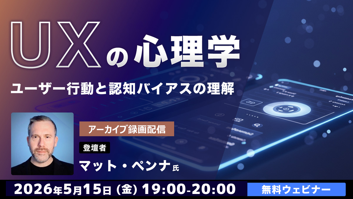 クリーク・アンド・リバー社(C&R社)は 2026年5月15日(金)19時から、2025年2月22日(土)に実施した、【UXの心理学~ユーザー行動と認知バイアスの理解~】のアーカイブ録画配信を実施します。