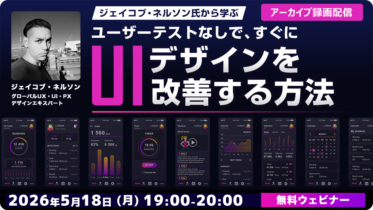 クリーク・アンド・リバー社(C&R社)は 2026年5月18日(月)19時から、2025年7月16日(水)に実施した、【ジェイコブ・ネルソン氏から学ぶ ユーザーテストなしで、すぐにUIデザインを改善する方法】のアーカイブ録画配信を実施します。