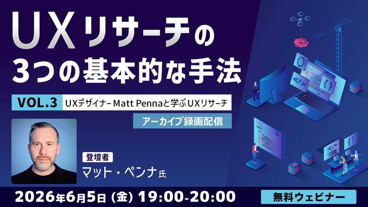 クリーク・アンド・リバー社(C&R社)は 2026年6月5日(金)19時から、2025年6月28日(土)に実施した、【UXデザイナーMatt Pennaと学ぶ「UXリサーチ」Vol.3 UXリサーチの3つの基本的な手法】のアーカイブ録画配信を実施します。