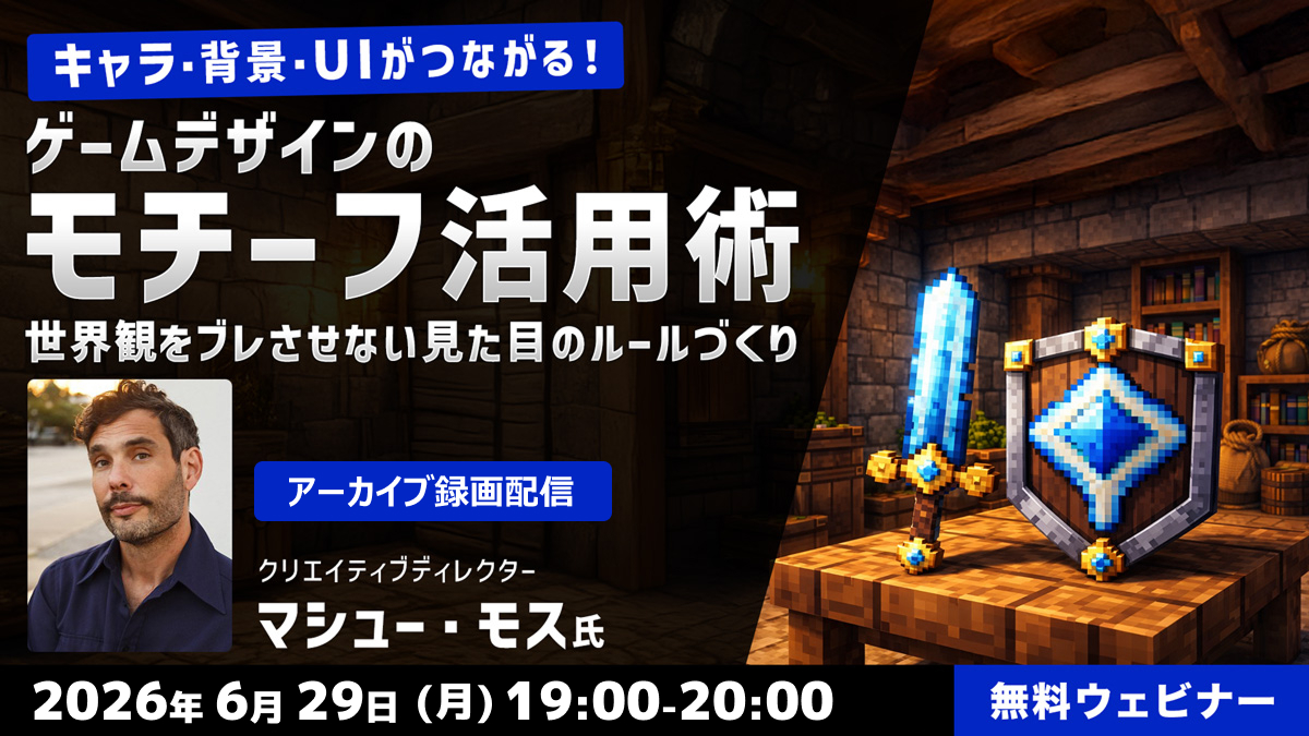 クリーク・アンド・リバー社(C&R社)は 2026年6月29日(月)19時から、2026年1月28日(水)に実施した、【キャラ・背景・UIがつながる!ゲームデザインのモチーフ活用術~世界観をブレさせない“見た目のルール”づくり~】のアーカイブ録画配信を実施します。