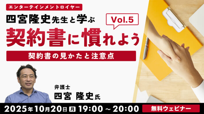 契約書に慣れよう! エンターテインメントロイヤー四宮隆史先生と学ぶ ~契約書の見かたと注意点~Vol.5