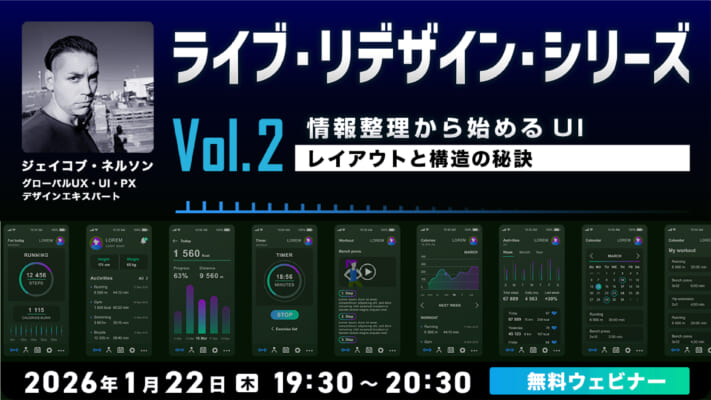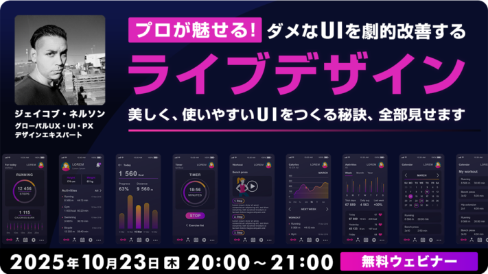 【アーカイブ録画配信】プロが魅せる!ダメなUIを劇的改善するライブデザイン 〜美しく、使いやすいUIをつくる秘訣、全部見せます〜