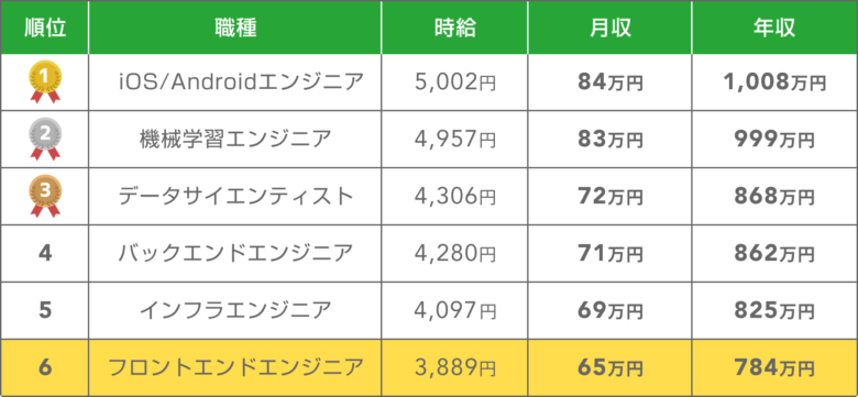 平均年収784万円(エンジニア職種別 年収ランキング6位)