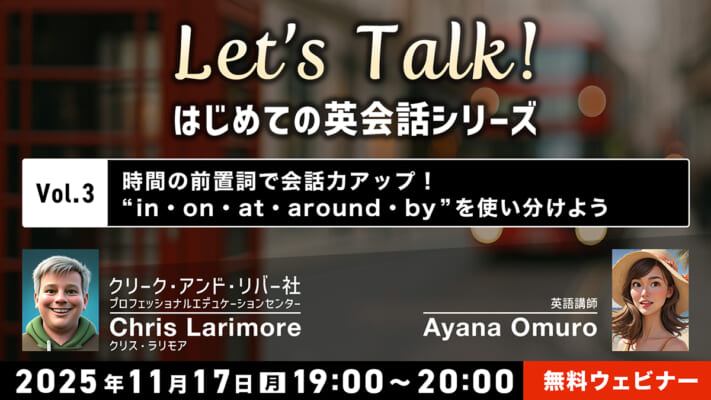 Let’s Talk! はじめての英会話シリーズ Vol.3 時間の前置詞で会話力アップ!“in・on・at・around・by”を使い分けよう